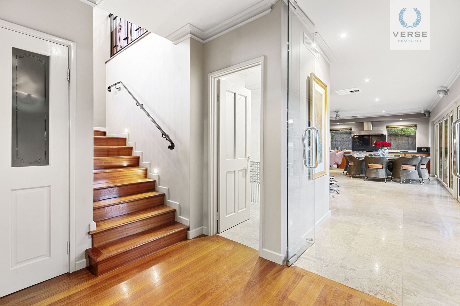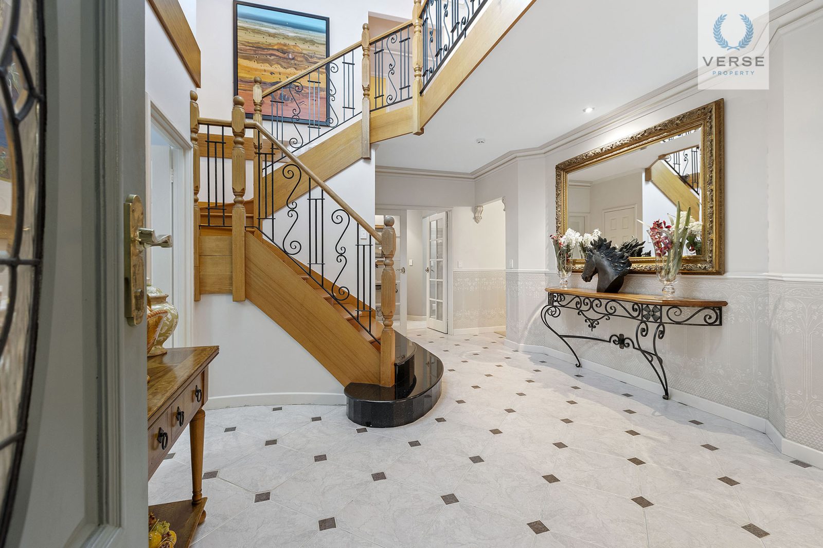 As you enter the gracious home, you are welcomed with a grand formal entrance and impressive timber staircase leading upstairs. The ground-level secondary master bedroom and ornate formal dining and loungeroom complete the official entrance area.