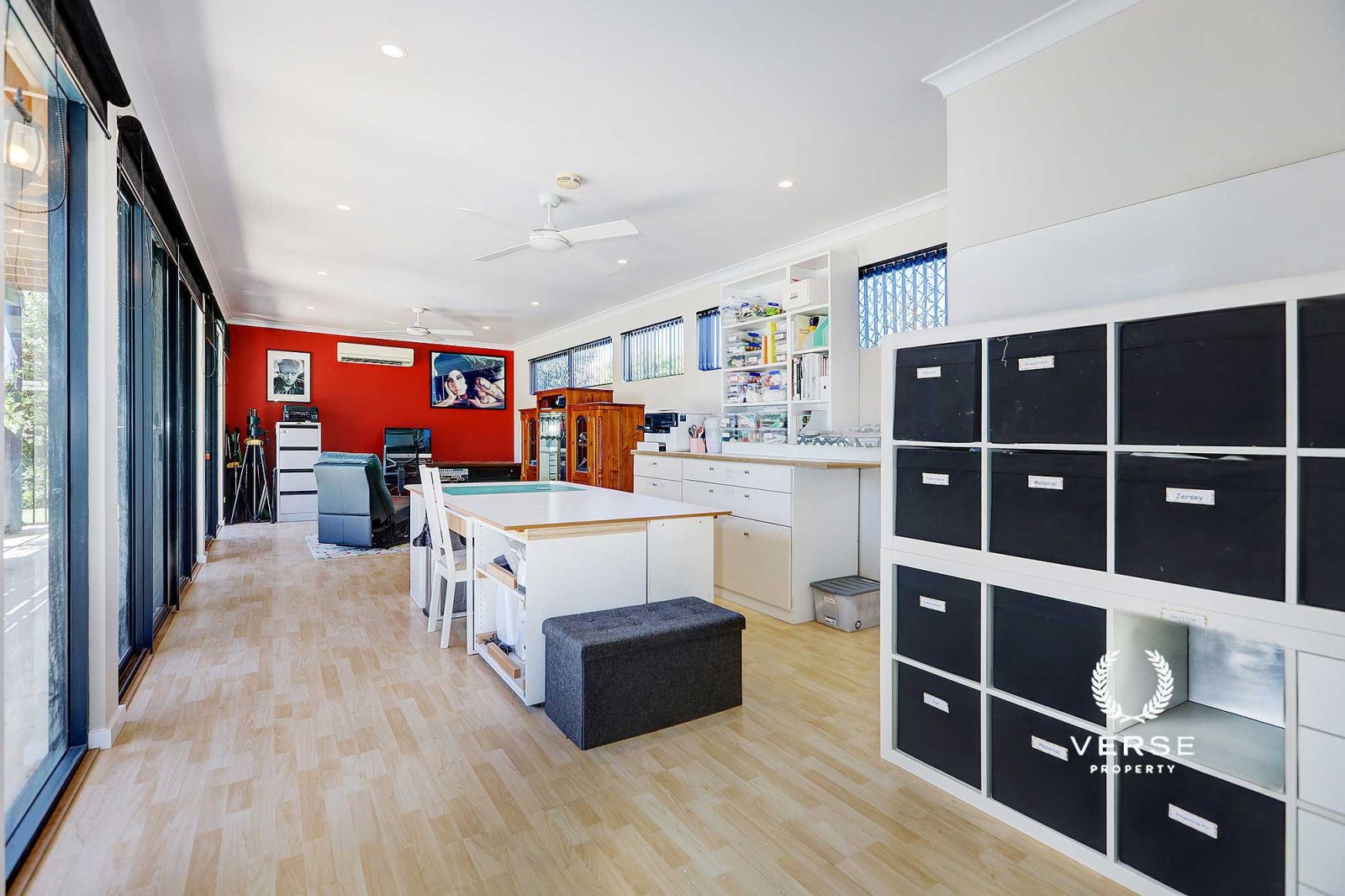– Large open planned poolside studio / ‘Granny flat’ / sewing room and/or media room.