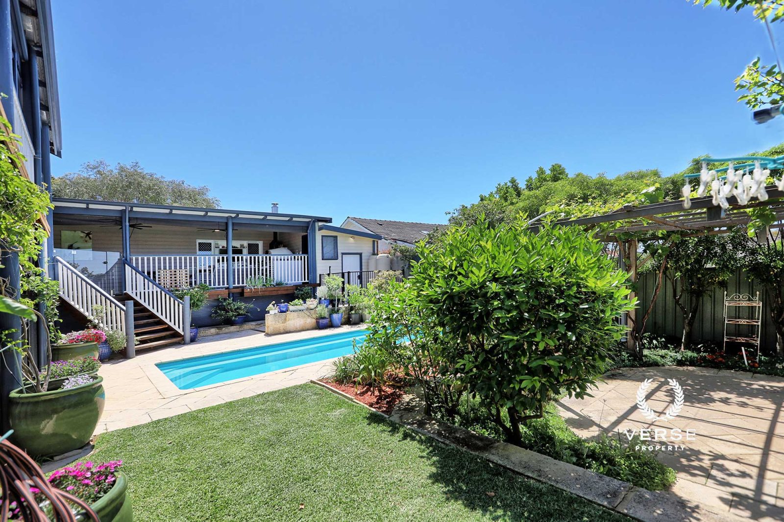 – Pristine, below ground pool with ‘split level’ gazebo garden, turfed garden area and patio.