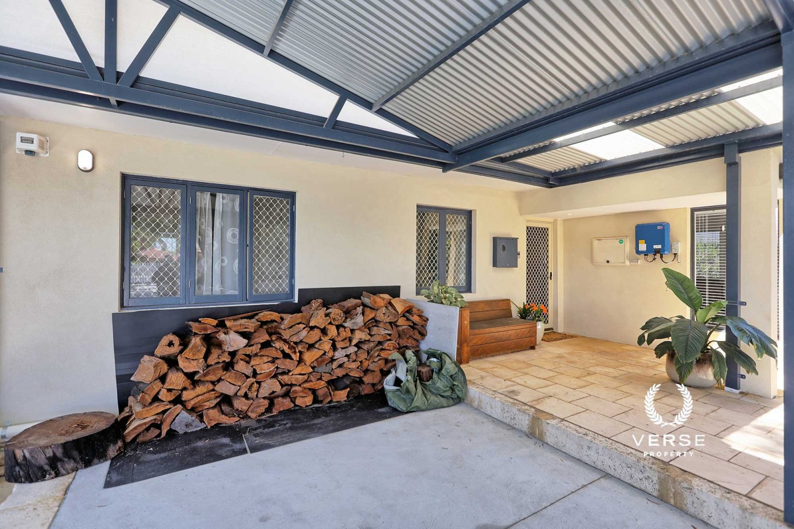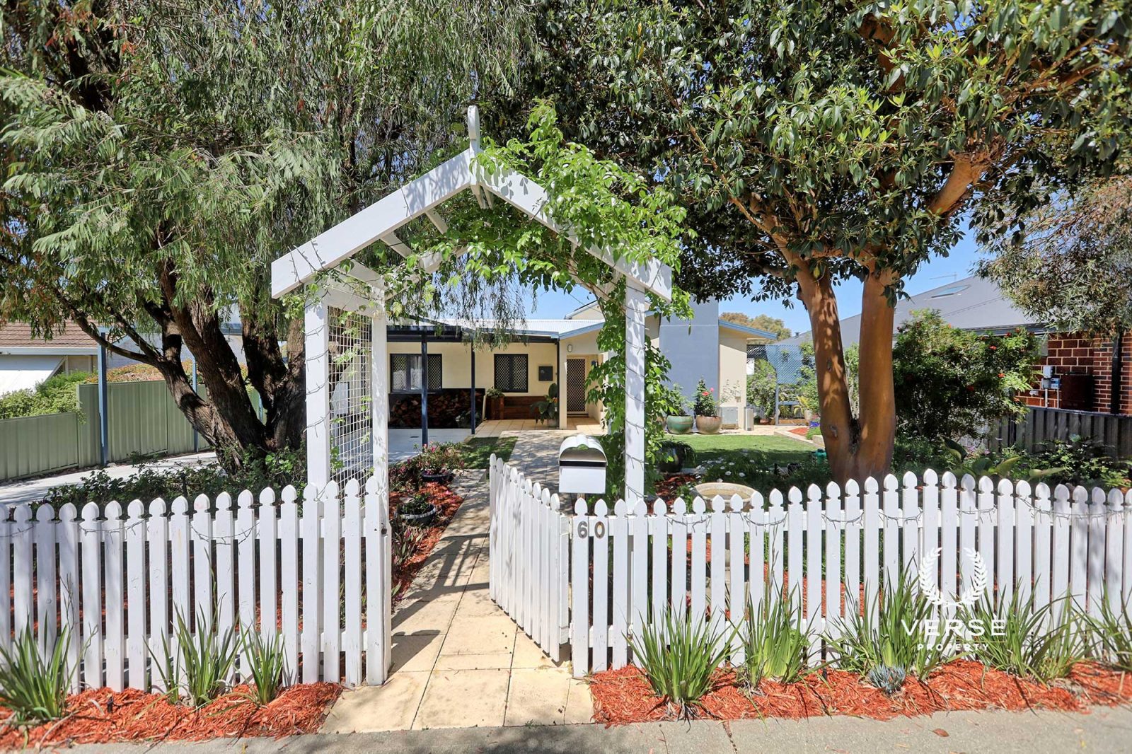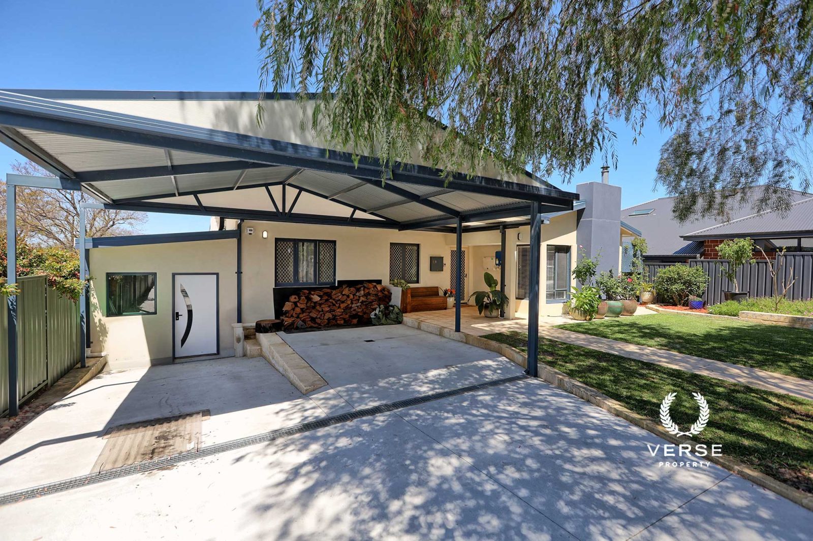 – Manicured,paved,picket fenced, native front garden with exquisite entrance & wood stores.