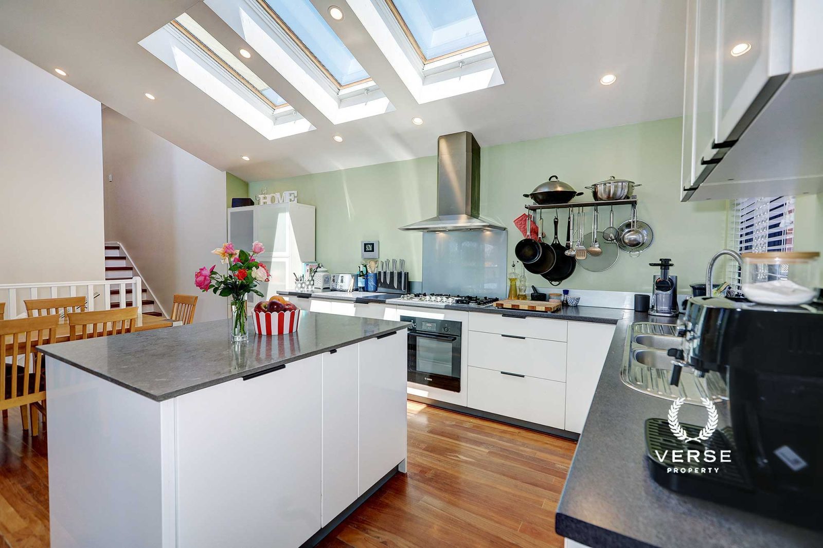 – Uniquely impressive, skylit Kitchen/Dining/(‘heart’) of the house